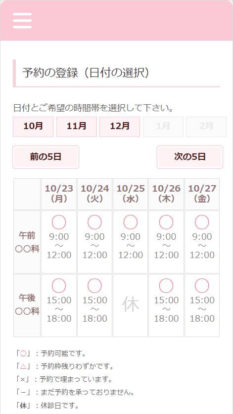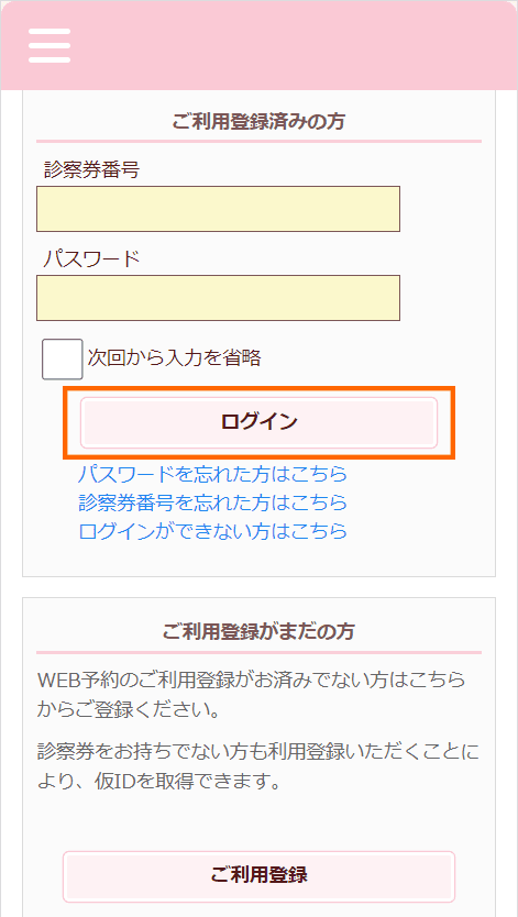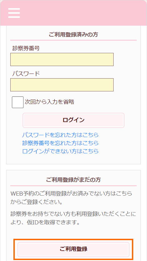 初めてWeb予約をご利用される方は初回登録が必要です。