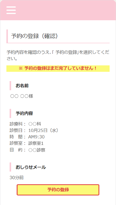 予約内容をご確認いただき、[予約の登録]をクリックして予約完了です。