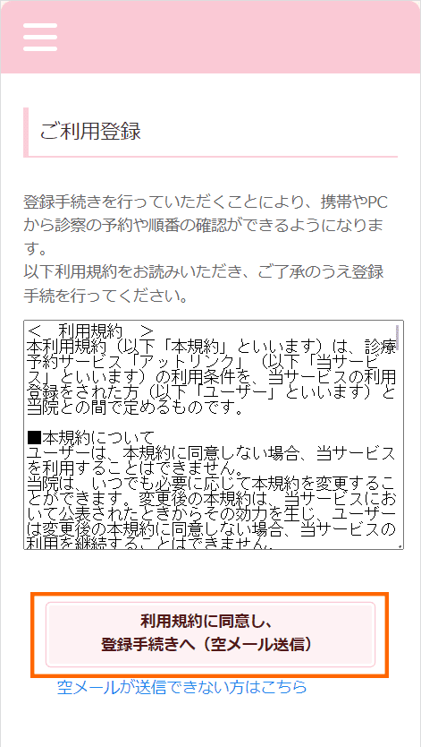 当院からのメールを送信いたします。メールに記載されたURLをクリックしてください。