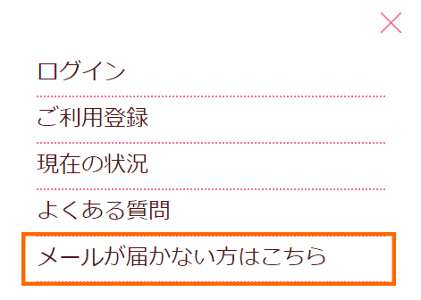 メール受信許可設定の方法は、Web予約サイトの サイドメニュー上の[メールが届かない方はこちら]に 設定方法をご案内していますので、ご確認ください。